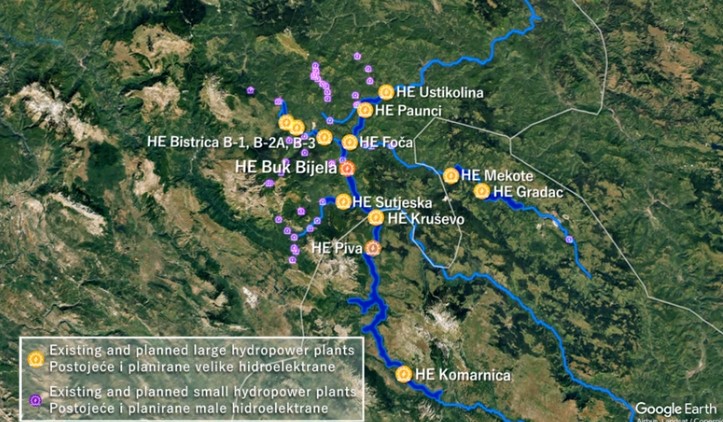 variabili di acqua dal bacino idrico. Ciò causerebbe gravi danni alla biodiversità e potrebbe essere pericoloso anche per le comunità a valle. Per mitigare alcuni questi impatti, la centrale idroelettrica Foča da 44 megawatt dovrebbe essere costruita a valle. Più in basso, verrebbe costruito anche l'impianto di Paunci da 43 megawatt. Eppure questi sono trattati come tre diversi progetti, con diverse concessioni, diverse VIA e diversi processi di autorizzazione.