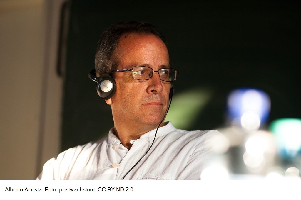 Alberto Acosta, ex ministro del primo governo di Rafael Correa ed ex presidente dell'assemblea che ha integrato con successo i diritti della natura nella Costituzione ecuadoriana, è scettico nei confronti dei patti verdi imprenditoriali. Per lui, non c'è modo di superare la crisi senza un cambiamento nei modelli di consumo e nel nostro rapporto con la natura, e senza una nuova economia per un'altra civilizzazione. Il grande obiettivo, afferma, è di unire tutte le voci dissidenti nel mondo che stanno pensando alternative contro l'accumulazione e la "setta" della crescita infinita.
