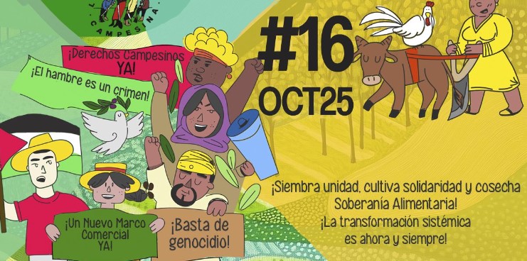 Il 16 ottobre, Giornata internazionale di azione per la sovranità alimentare dei popoli contro le multinazionali, in un momento globale in cui l'umanità sta attraversando una crisi sistemica, La Via Campesina, che riunisce contadini, comunità rurali, piccoli agricoltori, popoli indigeni, pastori, lavoratori migranti, donne, giovani e diversi popoli dell'ambiente rurale, mantiene la convinzione che i valori della sovranità alimentare siano essenziali per il cambiamento di cui abbiamo bisogno.