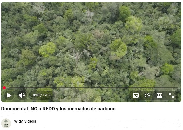 Prodotto nel 2024 su iniziativa delle comunità indigene dell'Amazzonia, questo documentario raccoglie esperienze, riflessioni e testimonianze di popoli indigeni e comunità tradizionali che hanno deciso di dire NO al REDD e ad altri progetti sul carbonio, che identificano come una minaccia per i loro territori e le loro culture. Mettono inoltre in discussione la logica capitalista, razzista e coloniale di questi progetti, che cercano di utilizzare foreste storicamente protette dalle comunità per ripulire l'immagine di aziende inquinanti e generare profitti.