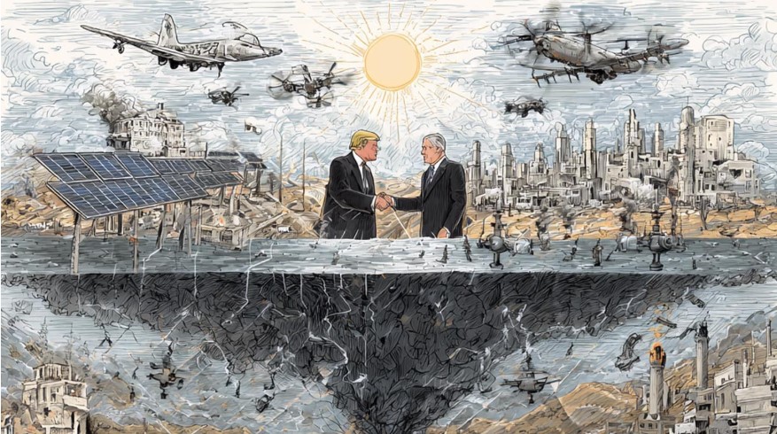 con la conseguente influenza sul capitalismo fossile globale, poggia su due pilastri: Israele e le monarchie del Golfo. Israele – descritto dall'ex segretario di Stato americano Alexander Haig come "la più grande portaerei americana al mondo che non può essere affondata" – è l'ancora dell'impero, che aiuta a controllare le risorse di combustibili fossili, è pioniere della sorveglianza e delle armi e si integra nella regione attraverso settori come l'agrobusiness, l'energia e la desalinizzazione. Per promuovere il loro dominio, gli Stati Uniti e i loro alleati stanno lavorando attivamente per normalizzare il ruolo di Israele nella regione. Questo processo è iniziato con gli accordi di Camp David (1978) e il trattato di pace tra Giordania e Israele (1994) ed è stato seguito dagli accordi di Abramo nel 2020 con gli Emirati Arabi Uniti, il Bahrein, il Sudan e il Marocco. Prima del 7 ottobre, la normalizzazione tra Arabia Saudita e Israele era imminente, sotto il patrocinio degli Stati Uniti, in un accordo che avrebbe cancellato la causa palestinese. Le azioni della resistenza palestinese hanno sconvolto quei piani.