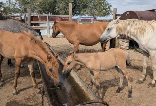 3) Villaggio di Bashenkol,19 agosto 2024I cavalli bevono acqua che gli abitanti del villaggio temono sia inquinata. La compagnia petrolifera Ada produce petrolio e gas vicino al villaggio dal 2009. Foto: Just Journalism.